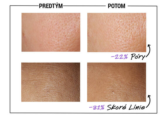 - Až o -22 % menej pórov pre viditeľnú redukciu nerovnomernej textúry.